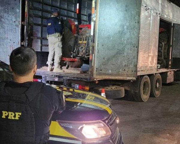 Na noite dessa quinta-feira (29), em Patos de Minas (MG), a Polícia Rodoviária Federal (PRF) recuperou dois tratores que foram roubados em Frutal (MG). Cada trator é avaliado em aproximadamente 300 mil reais.