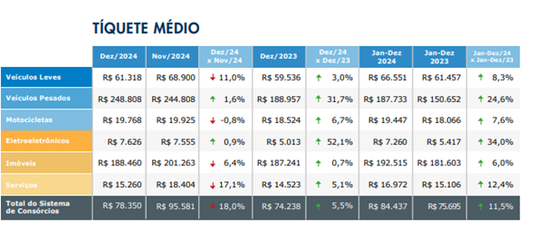 O aumento no tíquete médio pode ser impulsionado por diversos fatores, como o custo elevado dos financiamentos tradicionais: Com juros mais altos, o consórcio se tornou uma opção mais viável para empresários e profissionais do transporte e do agronegócio. Principalmente com os dados referentes à taxa Selic para 2024 e as previsões de investimentos e créditos liberados para cooperativas e pequenos produtores.