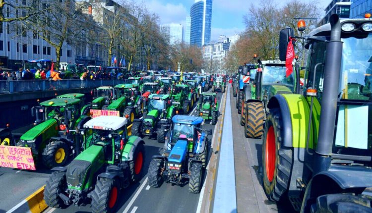 Milhares de produtores rurais entram em Bruxelas em protesto contra a tirania climática do governo belga que quer limitar as emissões de nitrogênio