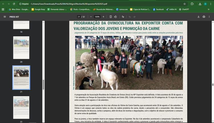 Para os jovens, a Arco também reserva um espaço relevante na Expointer. No dia 4 de setembro acontecerá o campeonato Cabanheiro do Futuro, uma iniciativa da entidade. A ideia é transmitir conhecimento sobre ovinos e promover a paixão pela ovinocultura entre crianças e adolescentes. Entre as atividades estão oficinas de jurados e campeonatos de apresentação de animais em pistas.
