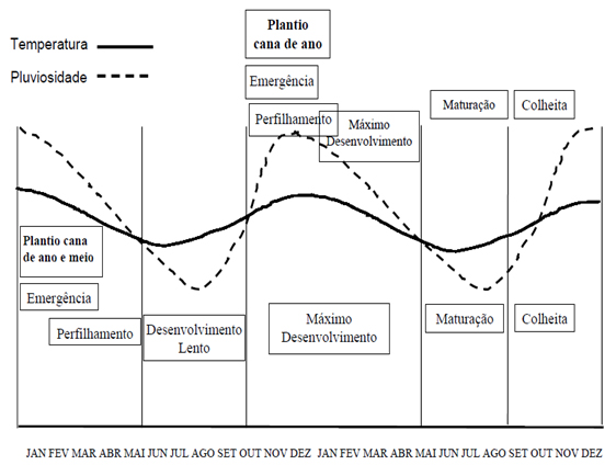 - Cana-de-ano: Esse sistema é amplamente adotado por pecuaristas que necessitam de uma fonte rápida de alimento para o rebanho, já que oferece uma produção acelerada. Contudo, a produtividade do canavial no primeiro ano é relativamente baixa. O plantio ocorre no início da estação chuvosa, entre outubro e dezembro. Durante os meses de março e abril, o crescimento da planta sofre uma pausa, e, posteriormente, o processo de maturação começa. Após o primeiro corte, o ciclo da cana-soca passa a ser de 12 meses, tornando-se mais eficiente em termos de produção.