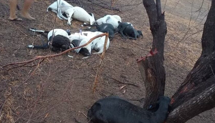 Descarga elétrica atingiu as ovelhas durante chuva rápida no Assentamento Paraíso, em Apodi; algumas fêmeas estavam prenhas e havia animais de raça pura entre as perdas.
