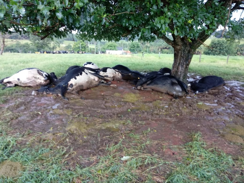 “A chuva foi muito forte e vi quando o raio caiu. Os animais estavam debaixo de uma árvore tentando se proteger do temporal e morreram todos. Foi bem próximo à casa do caseiro e ele estava lavando uma colher. Também recebeu uma pequena carga de choque e a colher caiu no chão. Quando fomos lá fora, já haviam morrido”, completa.