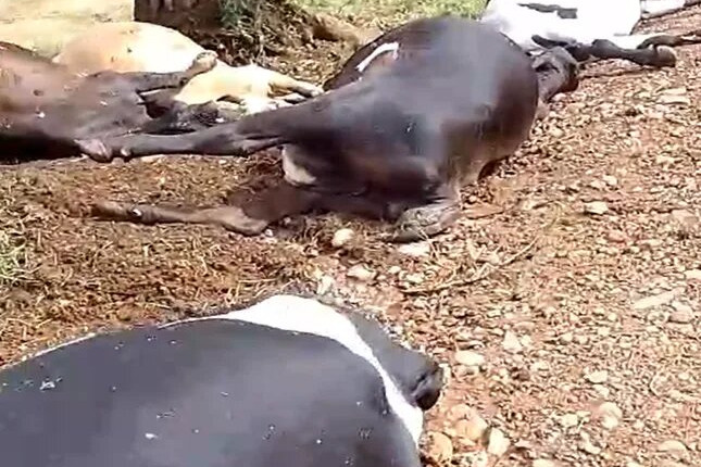 De acordo com relatos de moradores, um raio atingiu o local onde os animais estavam concentrados no pasto, causando a morte instantânea de quatro vacas e um touro.