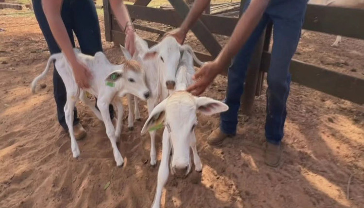 Um fato raro chamou a atenção de pecuaristas no interior de São Paulo: uma vaca Nelore pariu quatro bezerros de uma só vez, resultado de um processo de inseminação artificial. O episódio é considerado extremamente incomum na bovinocultura, já que, normalmente, uma vaca dá à luz apenas um bezerro por gestação. Em condições muito excepcionais, podem nascer gêmeos ou até trigêmeos, mas quadrigêmeos são praticamente inéditos.
