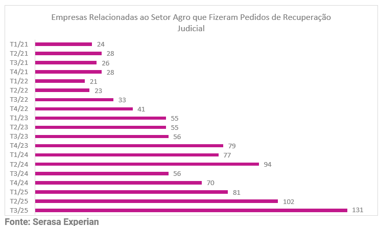 Para Marcelo Pimenta, head de agronegócio da Serasa Experian, o movimento não surpreende diante do contexto recente do setor. Ele avalia que a recuperação judicial surge, em muitos casos, como consequência de anos de endividamento acumulado sem correções de rota.