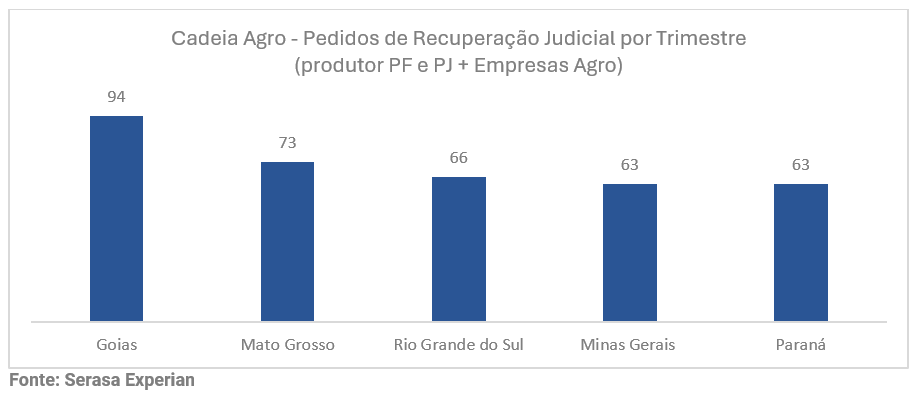 Estados com maior incidência de pedidos de recuperação judicial no Agro