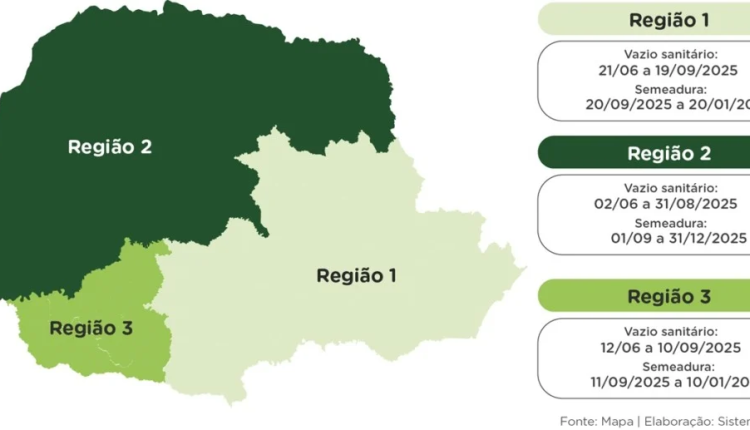 As regras estabelecem que os agricultores da região 1 só poderão iniciar o plantio a partir de 20 de setembro. Já os produtores da região 2 terão autorização para semear a partir de 1º de setembro. Para a região 3, que compreende municípios do Sudoeste paranaense, a ADAPAR promoveu uma mudança significativa: o vazio sanitário começará 12 dias antes do habitual, passando de 22 de junho para 10 de junho de 2025, e o início da semeadura será permitido a partir de 11 de setembro.