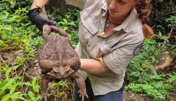Um sapo-cururu gigantesco de 2,7 kg foi encontrado, mas não na beira do rio. O animal estava em uma trilha no Parque Nacional Conway, em Queensland, na Austrália, quando foi visto pela equipe do Departamento de Meio Ambiente e Ciência do local.