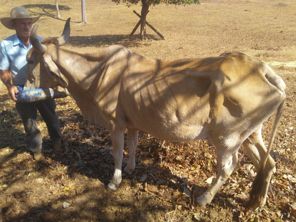 A seca no sudeste de Mato Grosso está matando o gado de fome. O pecuarista Antônio de Araújo Sobrinho, de Nova Brasilândia, precisou investir em ração e dividi-la em pequenas porções para manter vivas 20 vacas leiteiras. Mimosa, por exemplo, já perdeu mais de 10 quilos nestes cem dias sem chuvas.