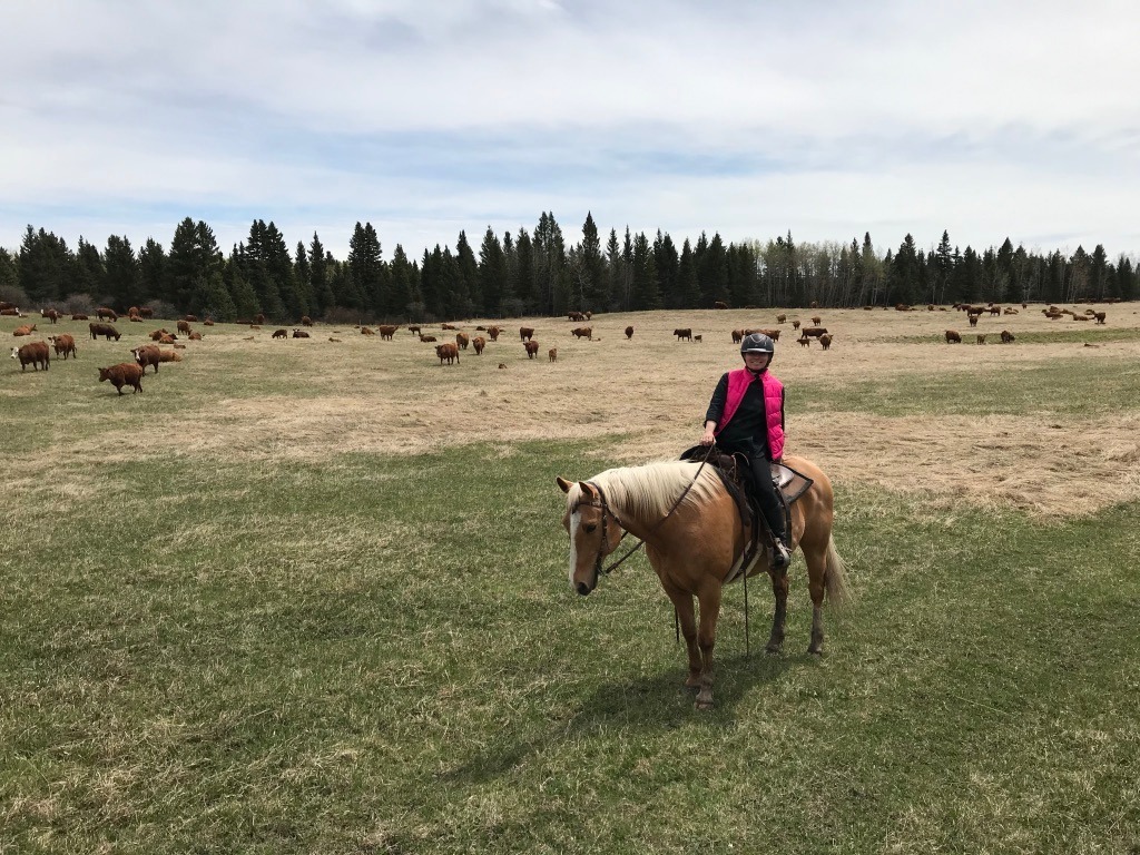 Nas fazendas da artista, os cavalos vivem em áreas de pastagem e estábulos estruturados.