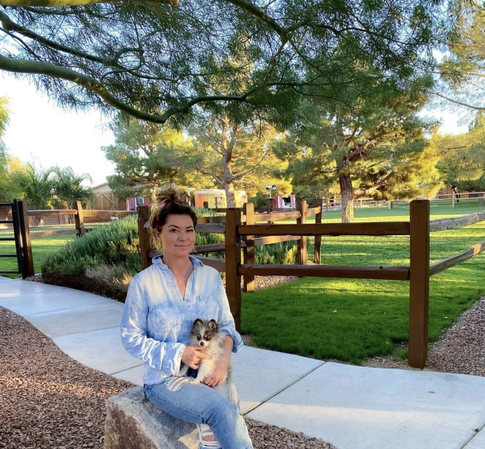 Shania frequentemente aparece caminhando com seus cães ou brincando com eles em suas propriedades.