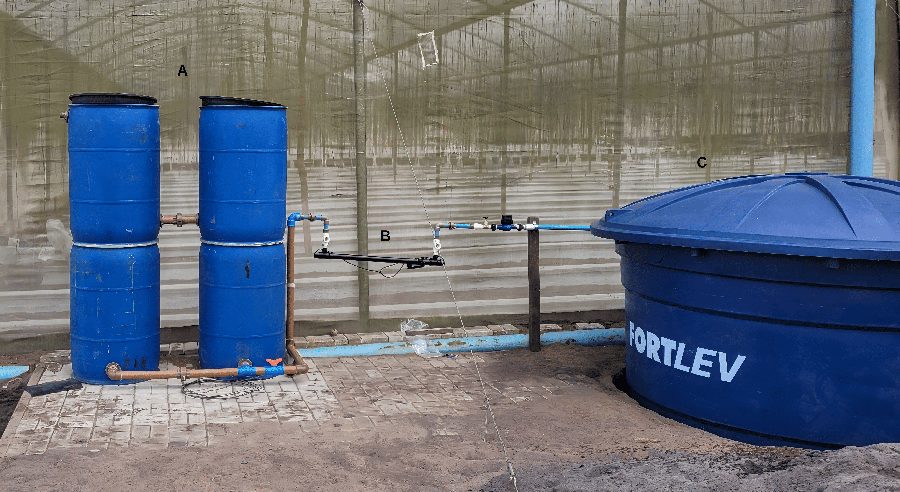 Um sistema baseado no uso de filtros de areia e equipamento de esterilização ultravioleta (UV) permite tratar e reutilizar na própria cultura, de forma segura, a solução nutritiva recolhida na irrigação de hortaliças cultivadas em substratos (sem solo). Desenvolvido pela Embrapa Agroindústria Tropical (CE), o sistema de reuso aumenta em 61% a eficiência de uso da água na produção e reduz em 29% o consumo de fertilizantes na irrigação, com economia para o produtor e benefícios para o meio ambiente.