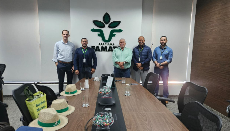 A comitiva foi recepcionada pelo diretor de Relações Institucionais, Ronaldo Vinha, e pelo superintendente do Sistema Famato, Cleiton Gauer.