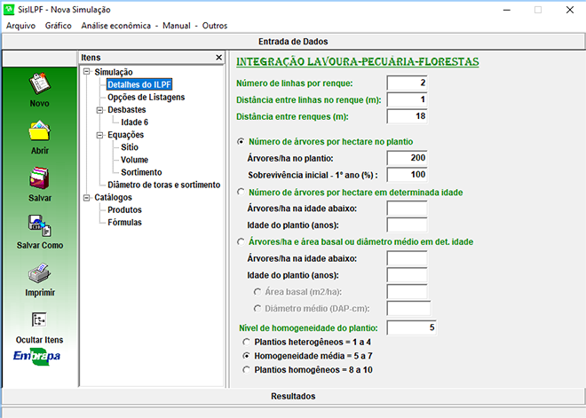 Para diferentes condições de clima e solo, os usuários podem testar todas as opções de manejo do componente arbóreo da ILPF, fazer previsões de produção florestal presente e futura, efetuar análises econômicas e decidir sobre a melhor alternativa para conduzir seu plantio florestal em sistema de integração.