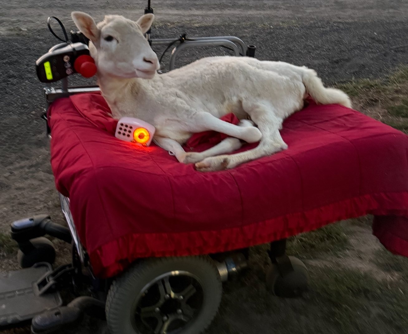 Kiki, a ovelha que nasceu paralítica e hoje dirige sua própria cadeira de rodas