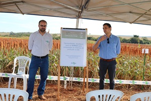 Frederico Botelho, engenheiro agrônomo da Embrapa Milho e Sorgo e coordenador do projeto, iniciou as apresentações, acompanhado do gerente comercial da Inpasa, Rui Farias. Botelho destacou os principais usos do sorgo granífero, como a produção de grãos e de etanol. “Há uma demanda crescente de sorgo para produção de etanol. Com a chegada da indústria e do mercado, esta é mais uma oportunidade para fomentar a cultura”, disse.