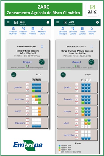 Botelho mencionou que “o sorgo traz segurança para a segunda safra, mas deve-se atentar para a janela ideal de plantio. E o Zoneamento Agrícola de Risco Climático (Zarc) é uma ferramenta fundamental para subsidiar o produtor”. A principal aplicação do Zarc é auxiliar produtores rurais e agentes do agronegócio na gestão de riscos e no planejamento da produção agrícola, através da definição das épocas adequadas de plantio para cada local”, disse Botelho.