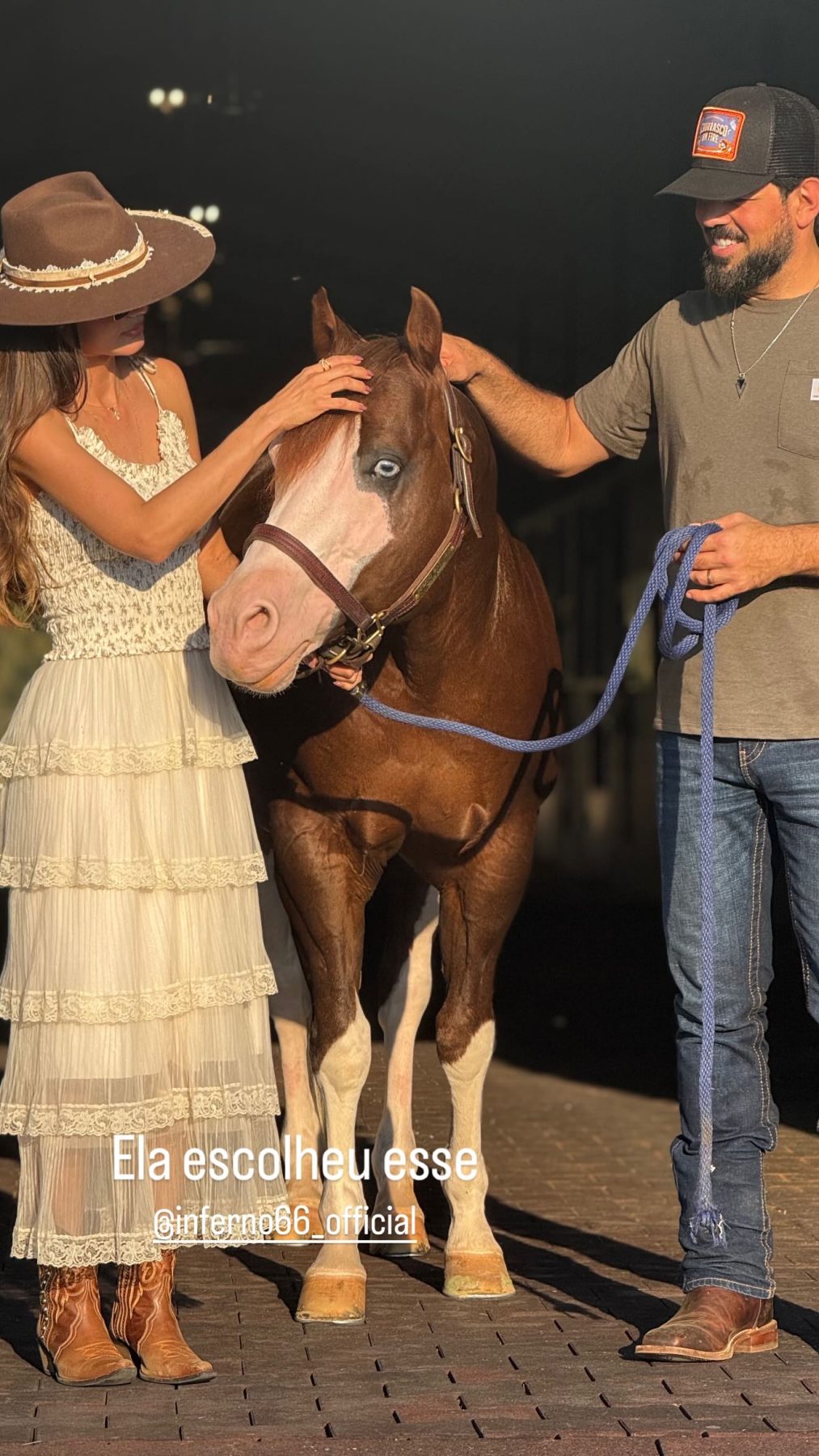 O cantor sertanejo Sorocaba, da dupla com Fernando, movimentou as redes sociais nesta semana ao aparecer ao lado da esposa, Biah Rodrigues, durante uma visita aos Estados Unidos. O casal posou com ninguém menos que Inferno 66, o garanhão Quarto de Milha avaliado em R$ 160 milhões, e a legenda “Ela escolheu esse” foi suficiente para levantar rumores de que o artista teria comprado o cavalo mais comentado do momento.
