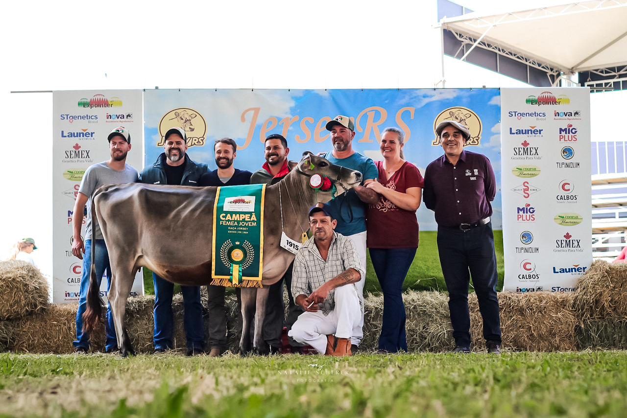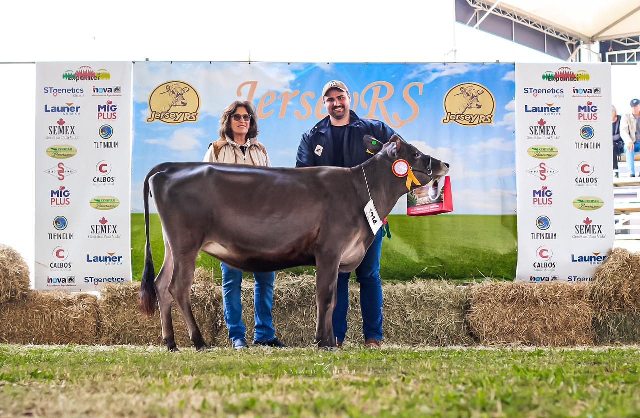 É da raça Jersey! Nanda Celebrity Aviostoso, a vaca do expositor Carlos Jacob Wallauer (Salvador do Sul-RS), sagrou-se Suprema Campeã do Gado de Leite da Expointer 2024