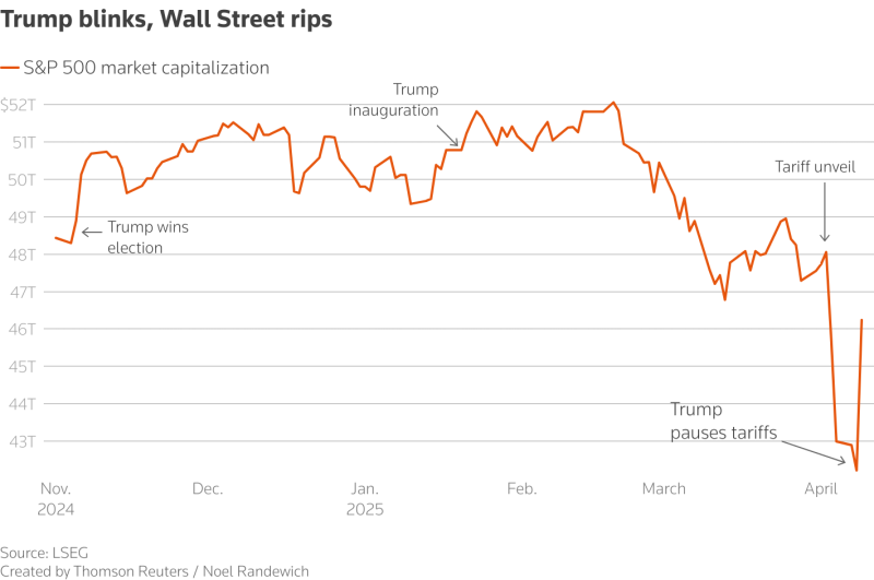 A reviravolta de Trump, que ocorreu menos de 24 horas após a imposição de novas tarifas pesadas à maioria dos parceiros comerciais, ocorreu após o episódio mais intenso de volatilidade do mercado financeiro desde os primeiros dias da pandemia de COVID-19.