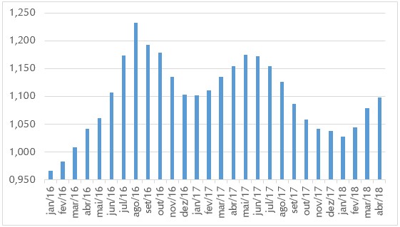 Desde o pico de produção, em dezembro de 2017, o volume captado recuou 8,7%, segundo o indicador (média nacional).
