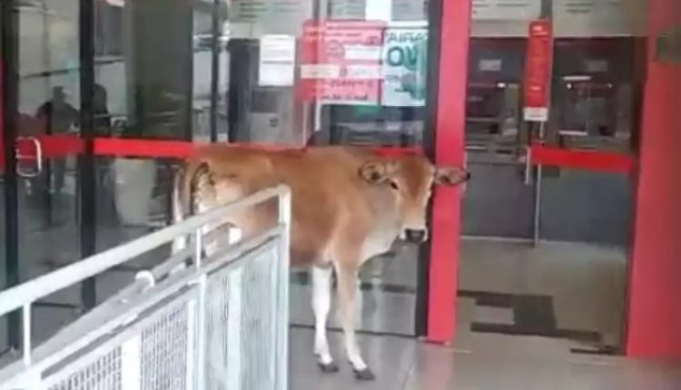 A situação inusitada ocorreu no último domingo (18). A aparição do animal intrigou os moradores do município que quiseram registrar o momento. Durante o vídeo, o animal parece não saber bem como foi parar ali, estando perdida. A vaca sobe pela rampa que dá acesso a agência, entretanto, não consegue entrar, uma vez que as portas estavam fechadas.