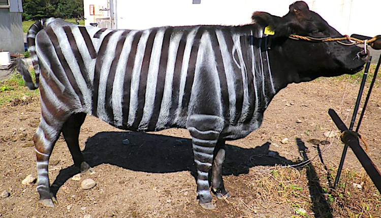 “Descobrimos que pintar listras semelhantes às de zebra em vacas domesticadas pode reduzir em 50% a incidência de moscas picadoras pousando sobre os animais”, concluíram os pesquisadores do estudo japonês.