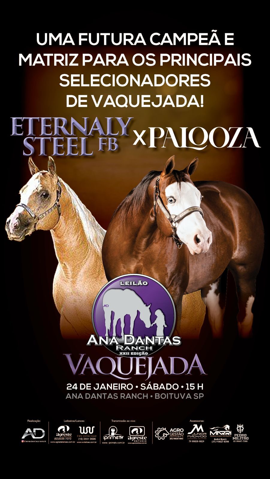 Com tradição consolidada no mercado e uma história marcada por animais que deixaram rastro nas pistas, o leilão será realizado em 24 de janeiro (sábado), às 15h, no Ana Dantas Ranch, em Boituva (SP), com transmissão pela iPrime TV e pelo Agreste Leilões, ampliando o alcance para compradores e investidores de todo o Brasil.