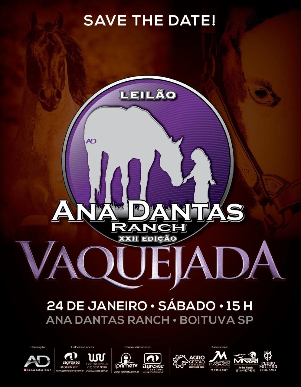 O 22º Leilão Ana Dantas Ranch – Edição Vaquejada acontece em: