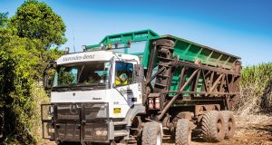 Participamos da colheita da cana-de-açúcar a bordo de um Mercedes Axor 3131 preparado para andar sozinho e com jeitão de veículo lunar. Conifra!