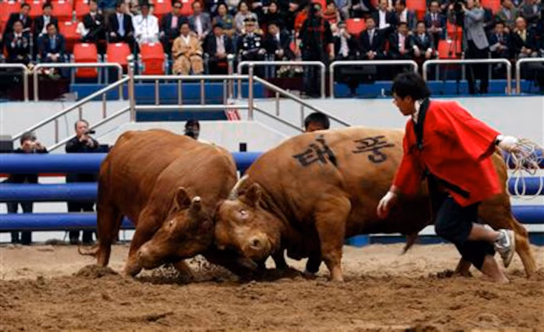 Em Cheongdo, 96 touros da raça Hanwoo se enfrentam em disputas de força que duram poucos minutos, movimentam milhões em apostas e turismo e preservam uma tradição rural coreana com mais de mil anos — sem morte do animal e sem participação de toureiros.